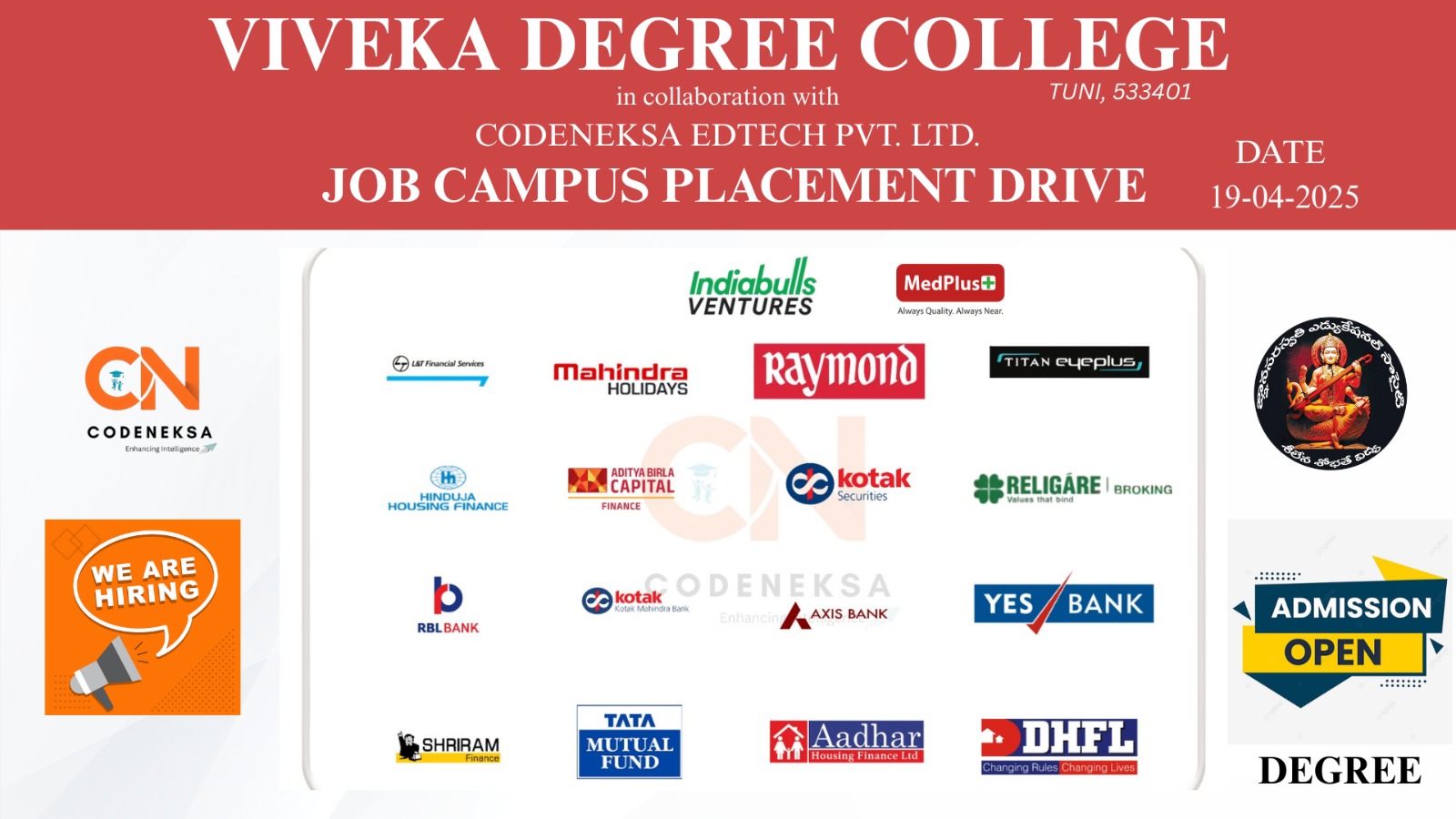 Viveka Degree College, located in the educational hub of Tuni, is a recognized institution committed to delivering quality and value-based higher education. With a strong focus on academic excellence, discipline, and student development, the college offers a nurturing environment that empowers students for both career and life success.